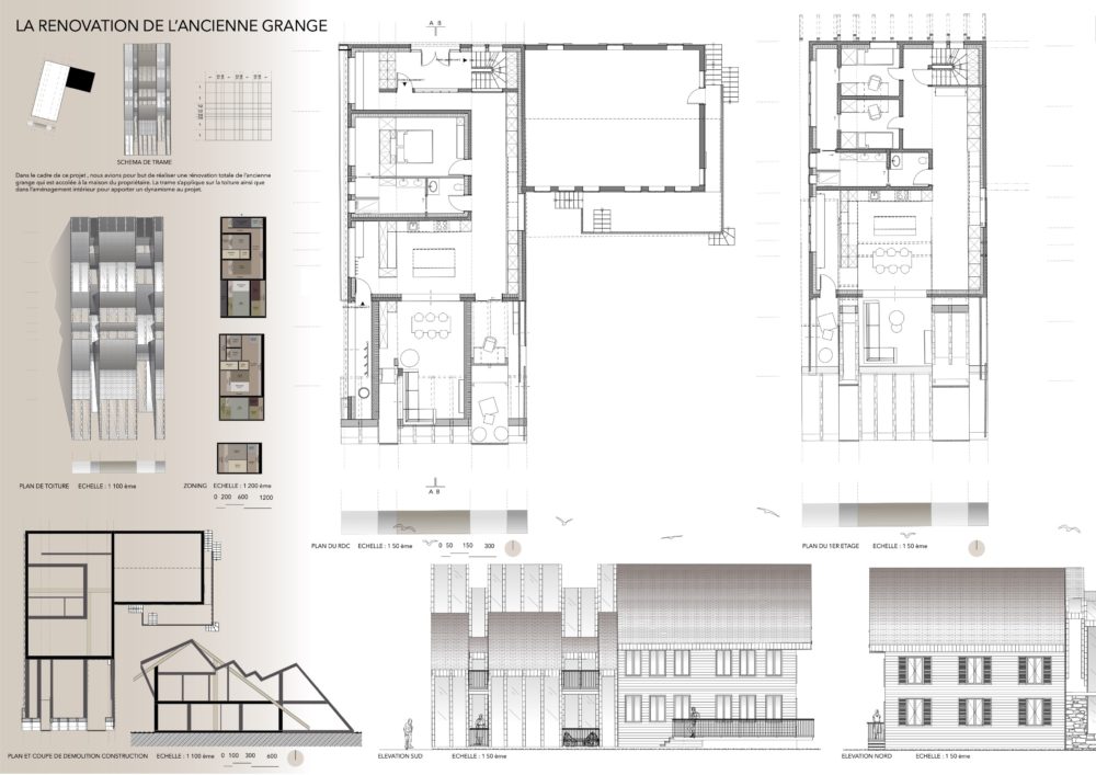Architecture d'intérieur : Transformation d'une grange en logement et réhabilitation de la ferme et proposition d'une réhabilitation de la porcherie en conservant sa base et son nez mais en proposant une nouvelle construction pour habiter une serre de production et un espace collaboratif.