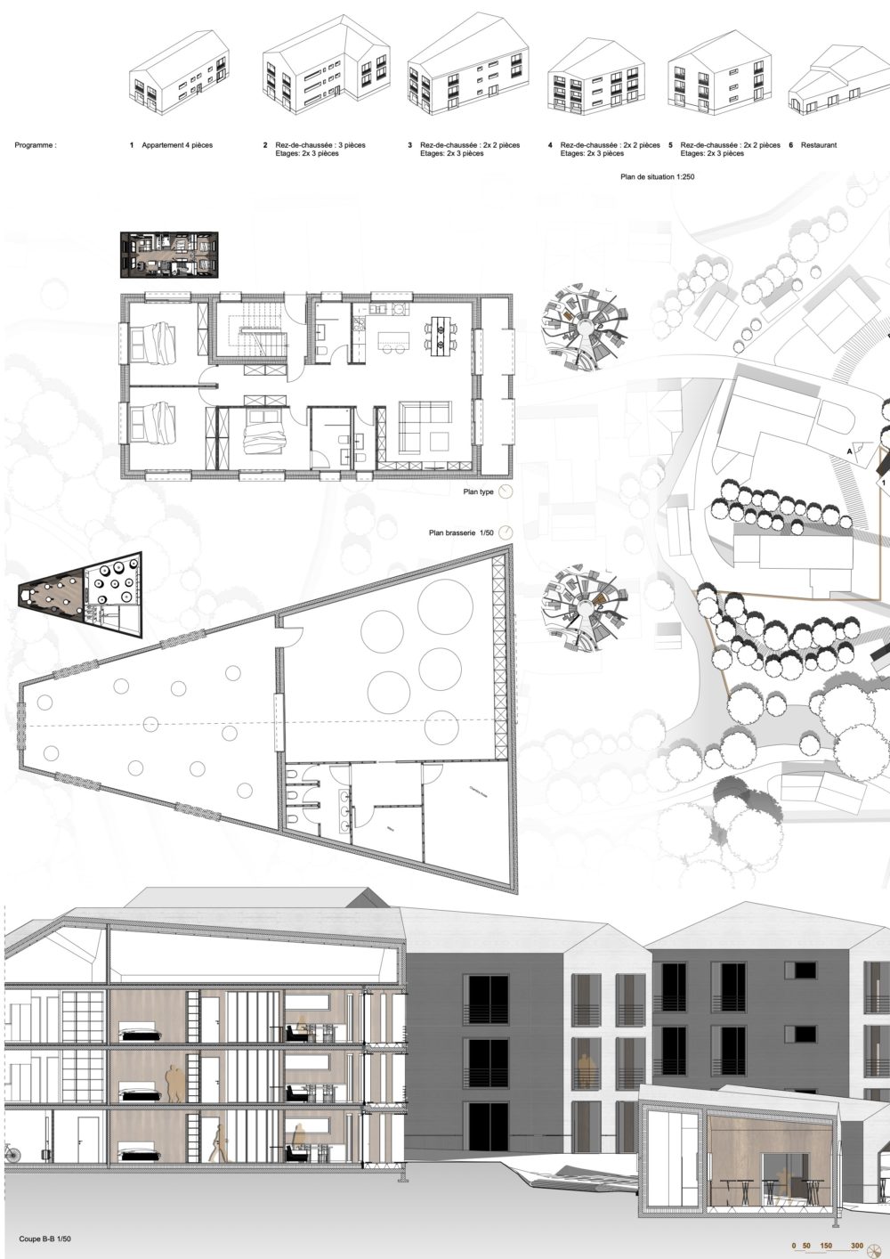 Architecture : Proposer des logements permanents sous la forme de petits collectifs ainsi que des espaces commerciaux pour accueillir au minimum un bar et un restaurant.